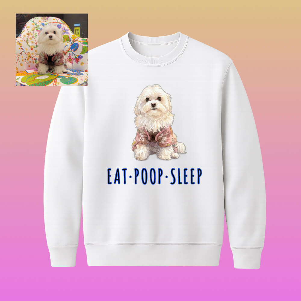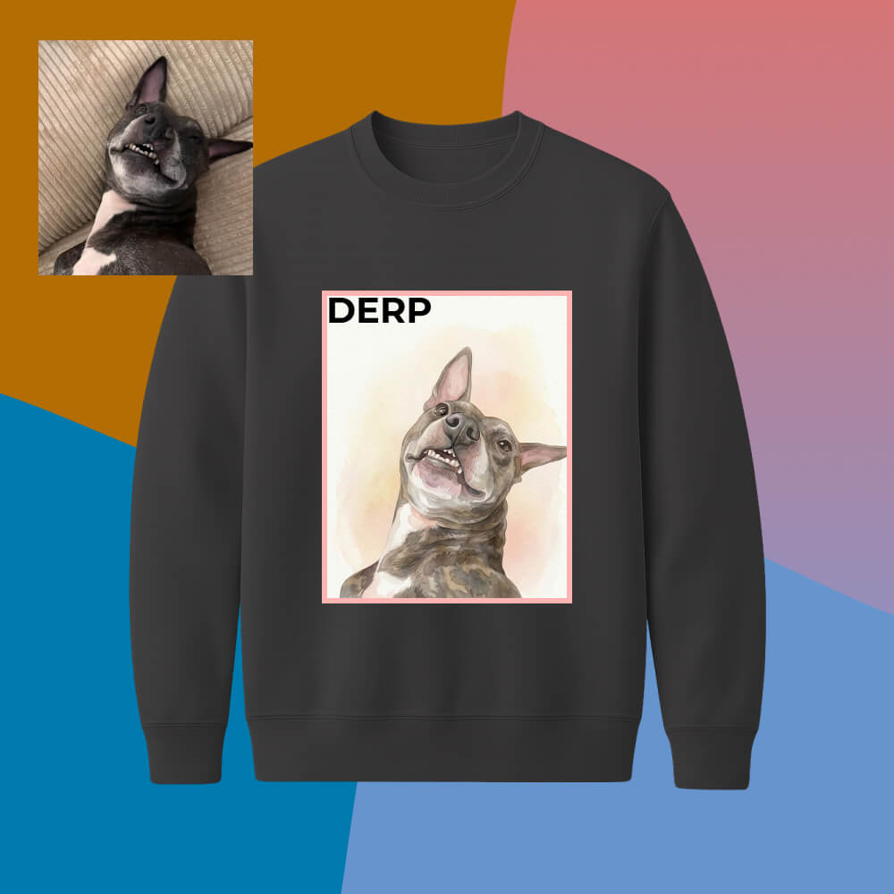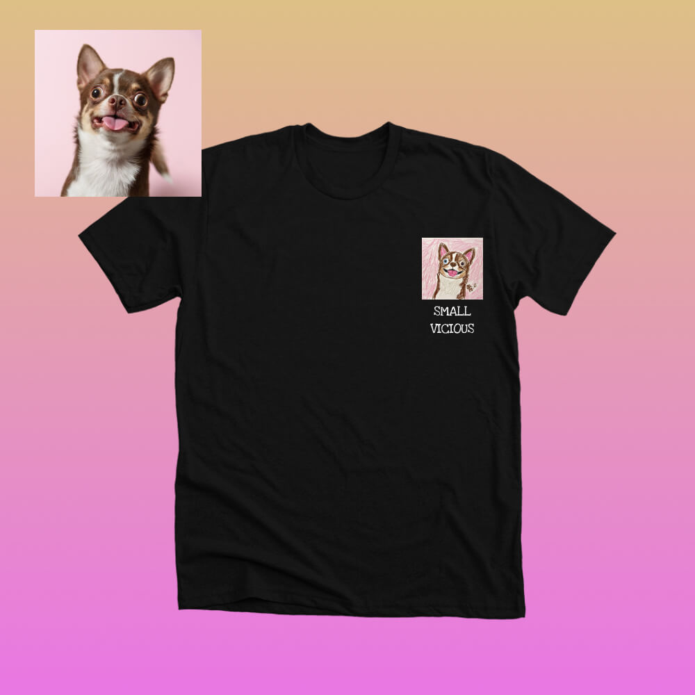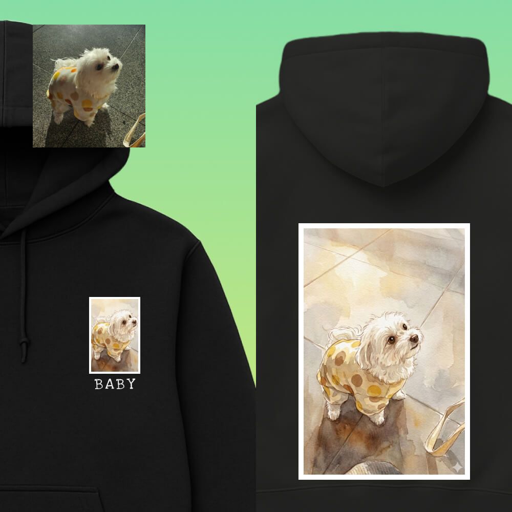 Skip the back-and-forth emails and expensive commissions. Turn your pet’s photo into fun, wearable designs in seconds.