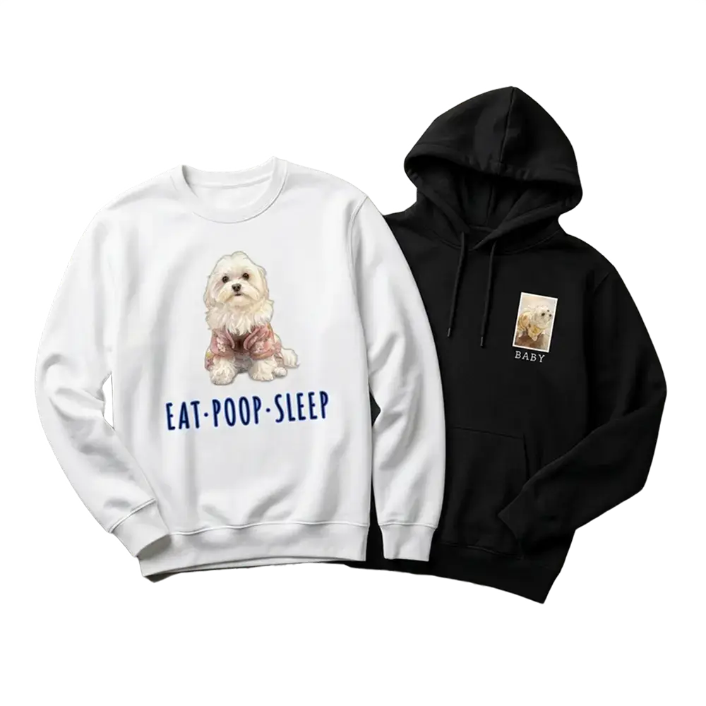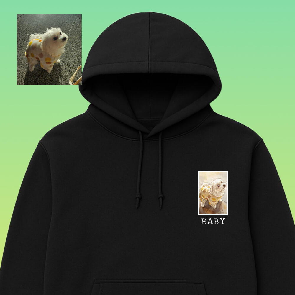 You already know you want your pet on a hoodie, and we made the process as painless as possible. Grab a photo, pick your style, and get your order in today so you can be wearing it out next weekend.